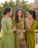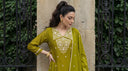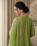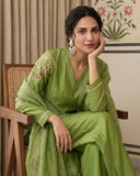 Lime Green Mul Chanderi Silk A-Line Suit Set with Thread & Sequin Work 45% off