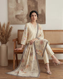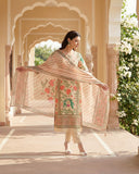 Cream Mul Chanderi Silk A-Line Suit Set with Floral Print 45% off
