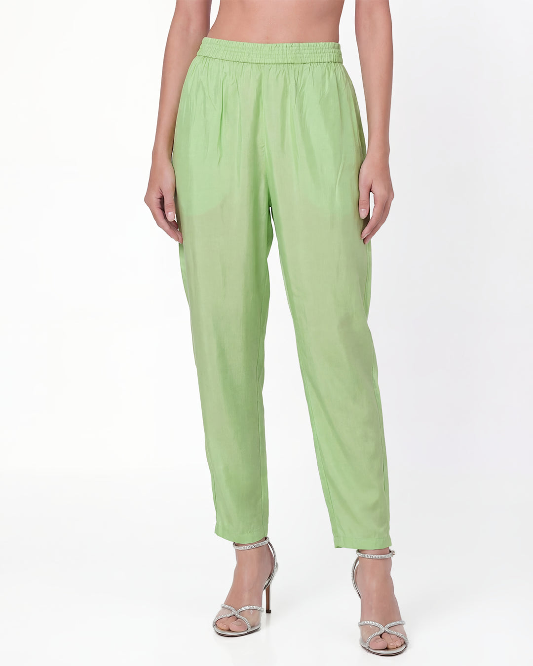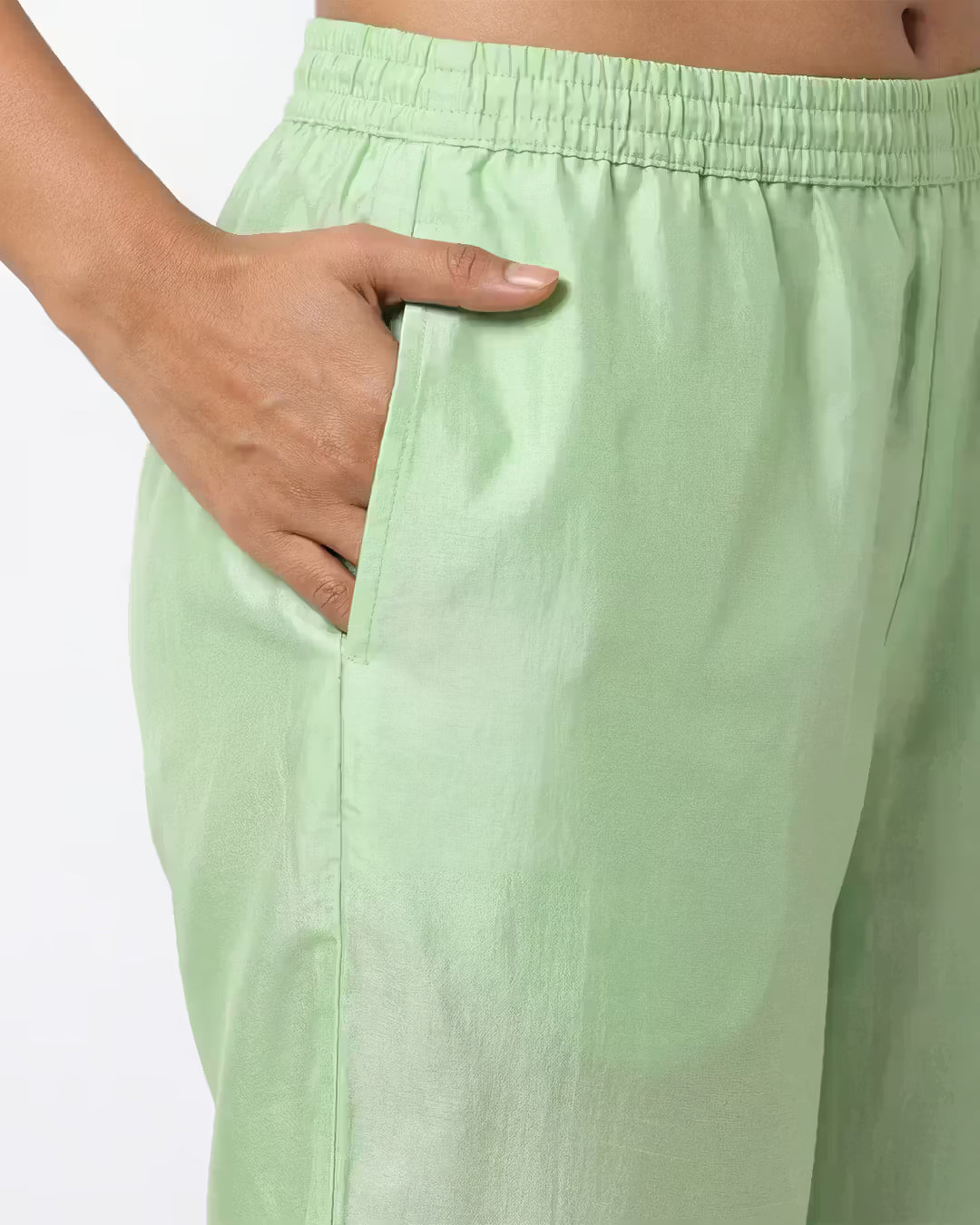 Pastel Green Silk Blend Straight Suit Set